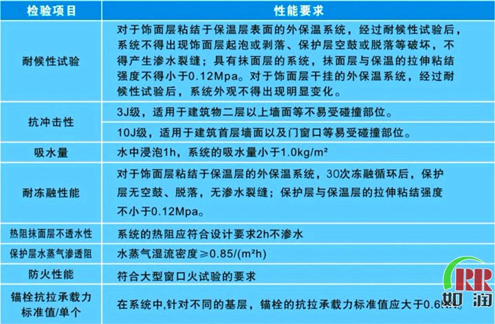 RBW聚氨酯硬泡外墻保溫系統(tǒng)性能指標(biāo)